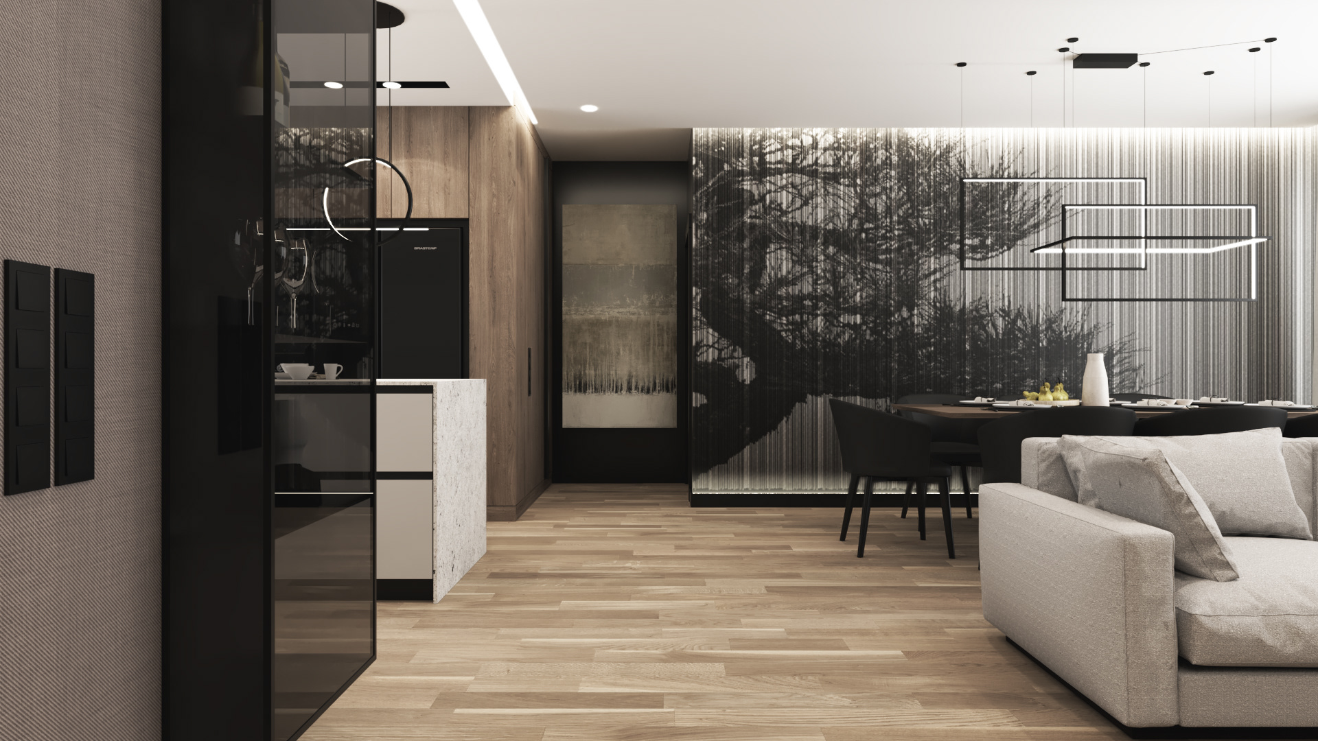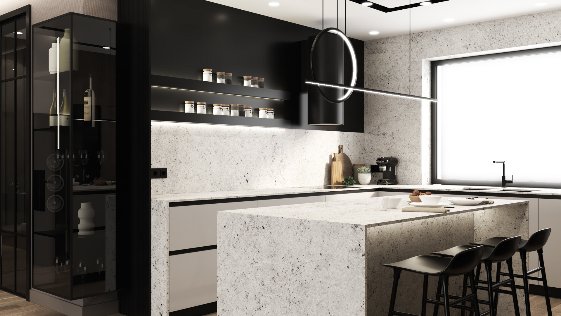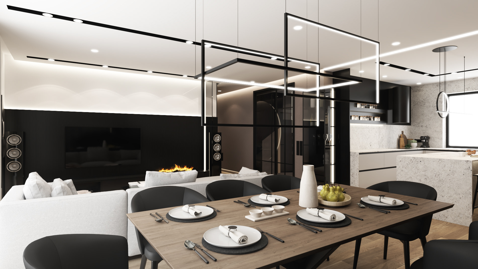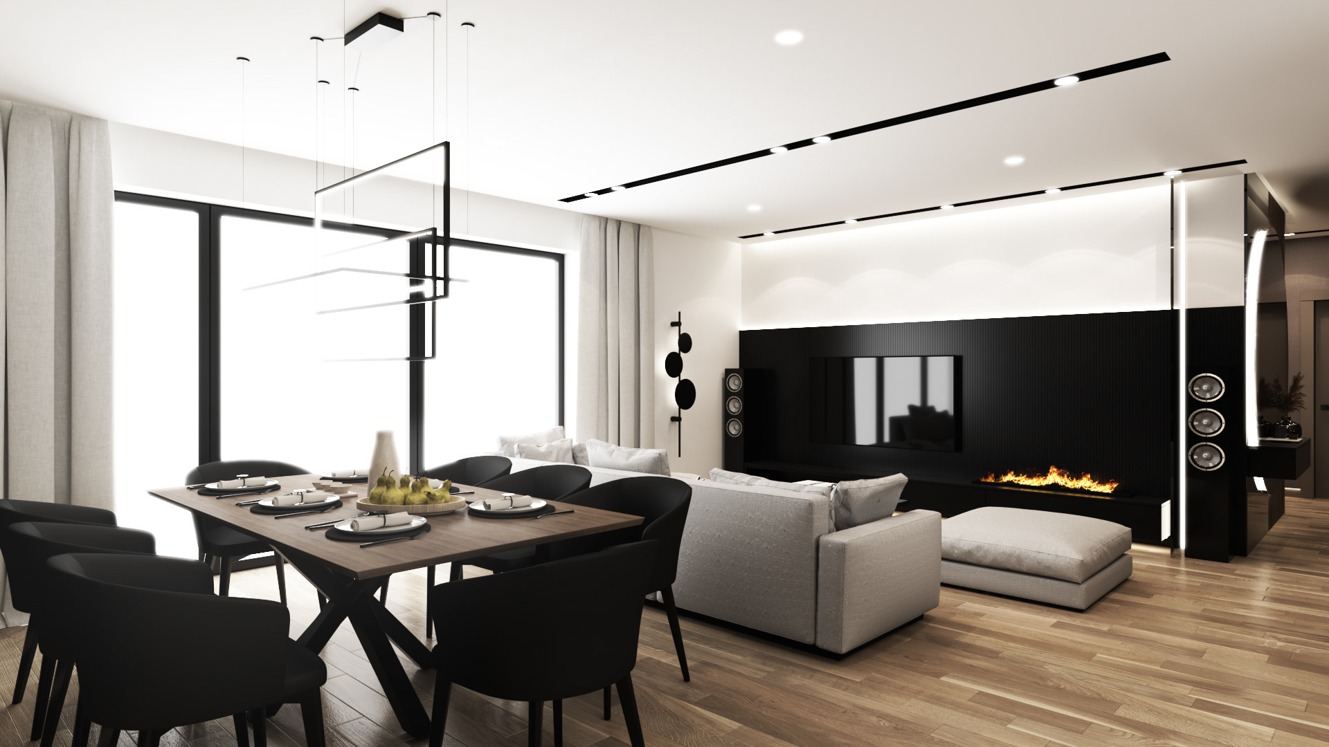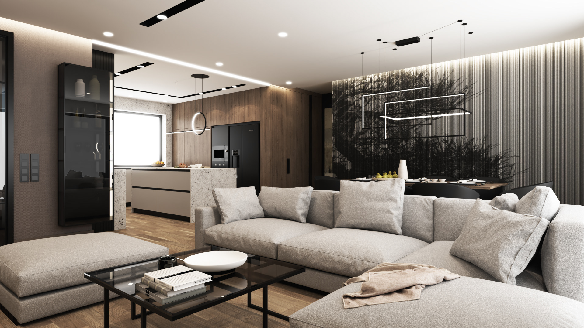 Strefa Dzienna - Salon Jadalnia Kuchnia w domu jednorodzinnym w Skawinie.