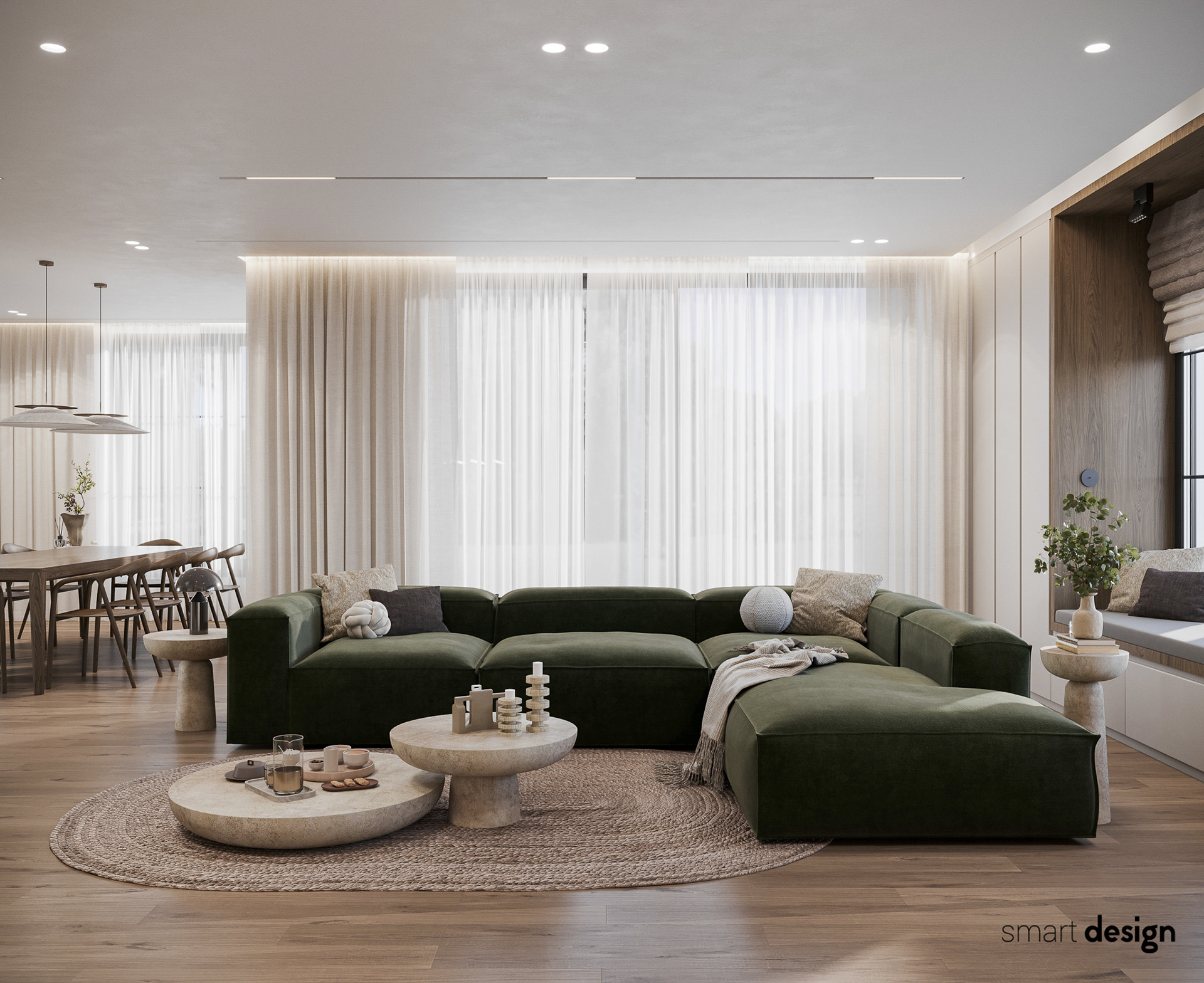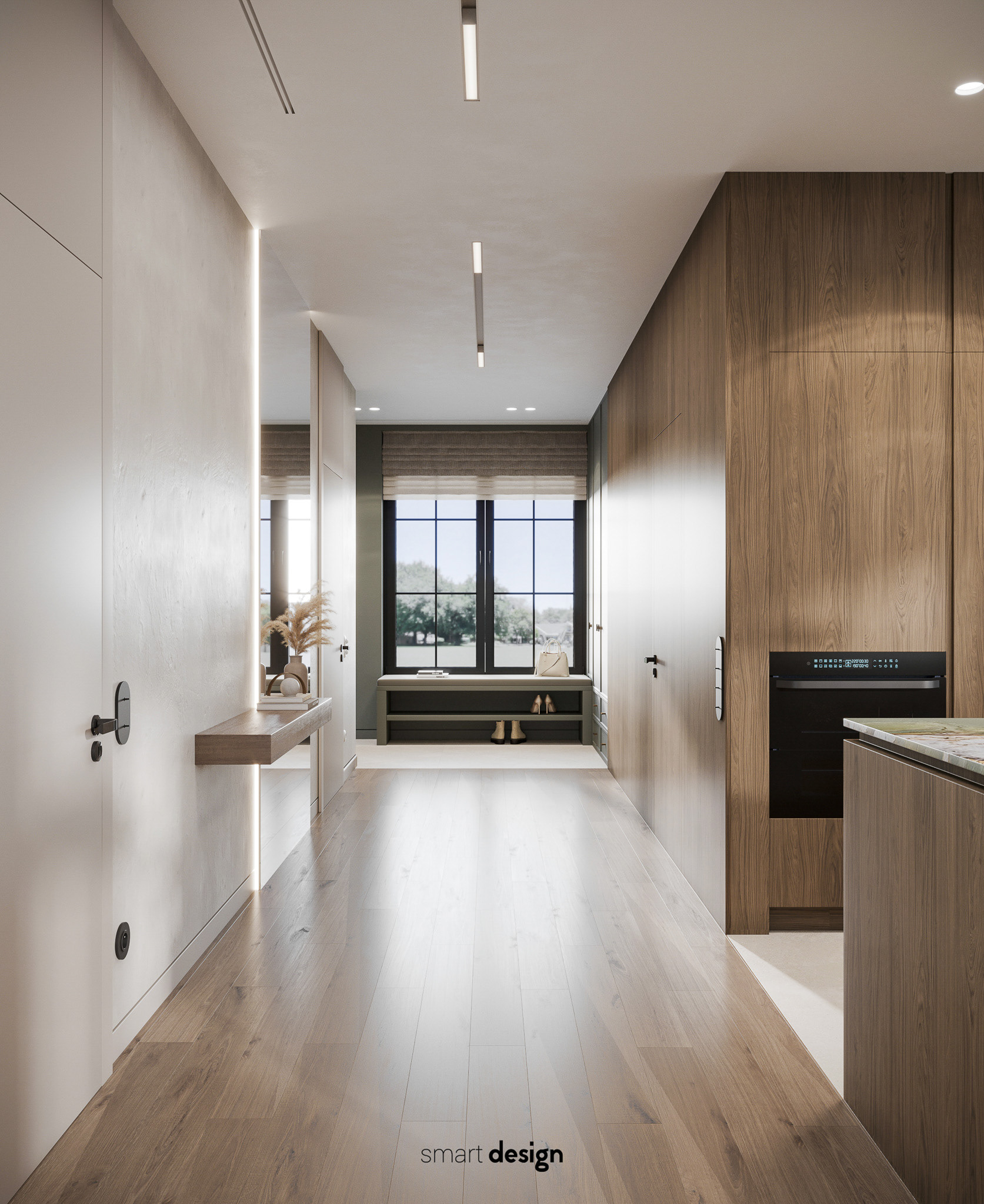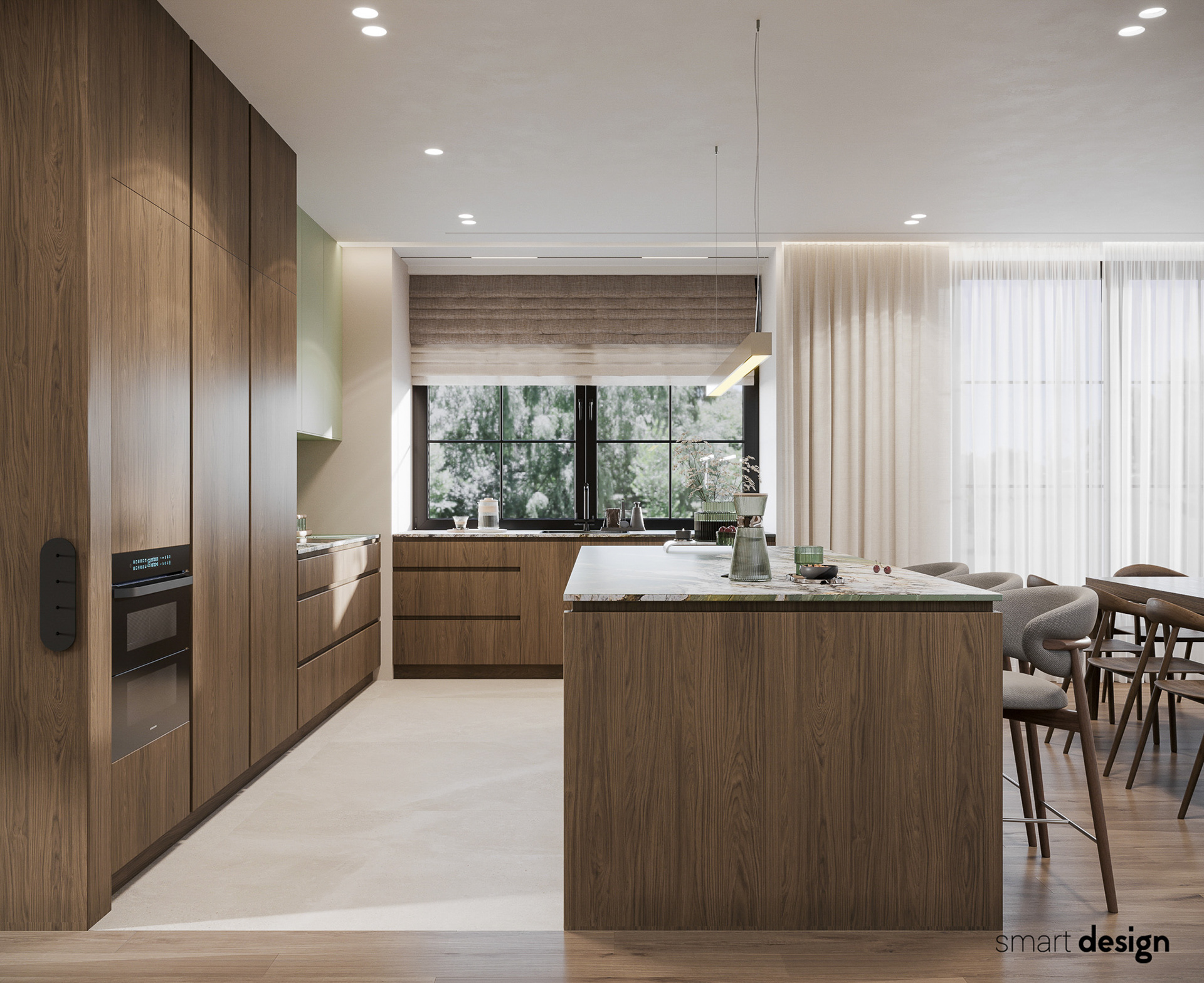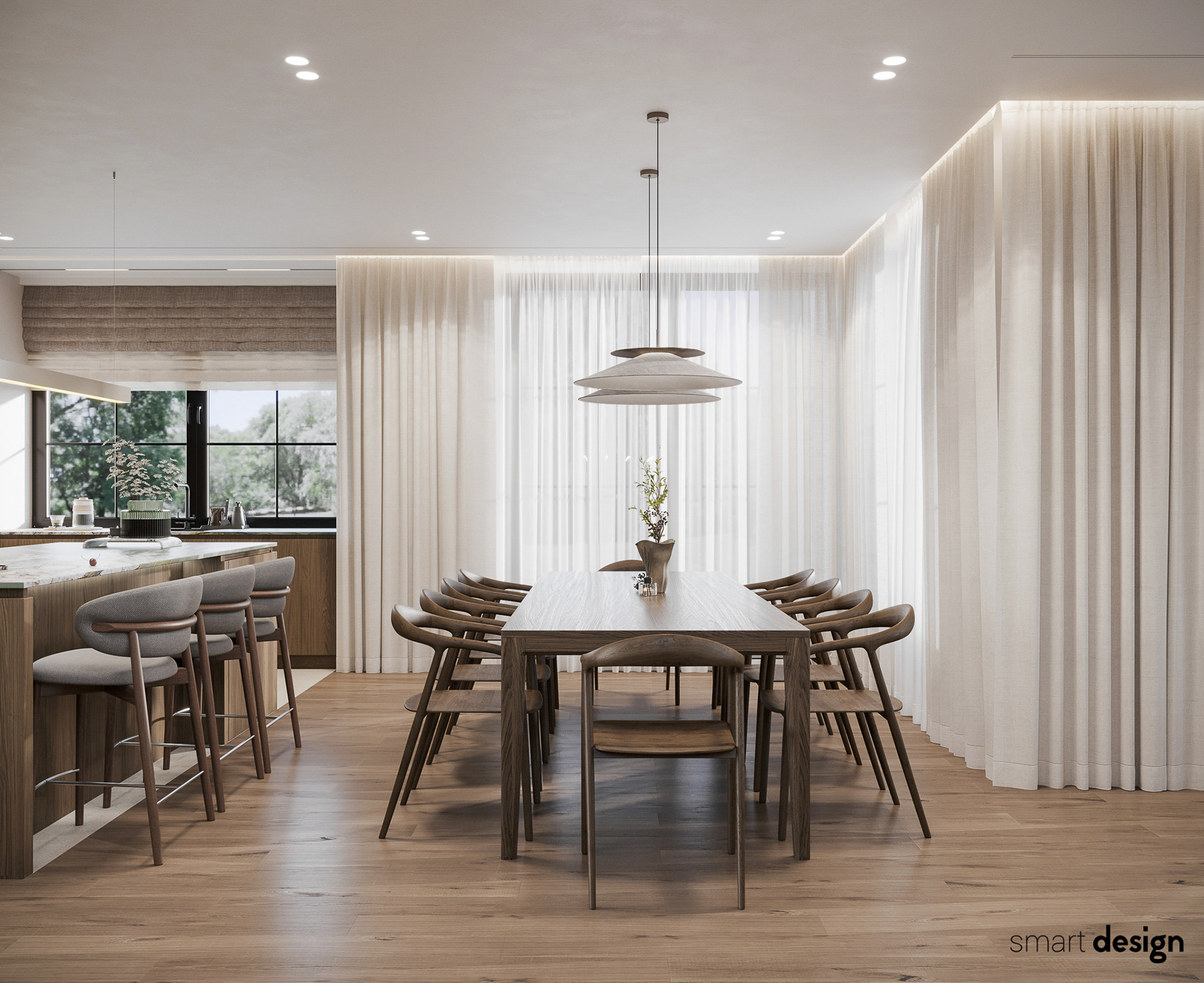 Dom w stylu japandi Projekt wnętrz domu utrzymany w stylistyce japandi, łączącej japoński minimalizm z nordycką przytulnością. Naturalne drewno, stonowana paleta barw i proste formy tworzą spójną, spokojną przestrzeń sprzyjającą codziennemu komfortowi. Całość została zaprojektowana z myślą o funkcjonalności, harmonii i ponadczasowej estetyce.