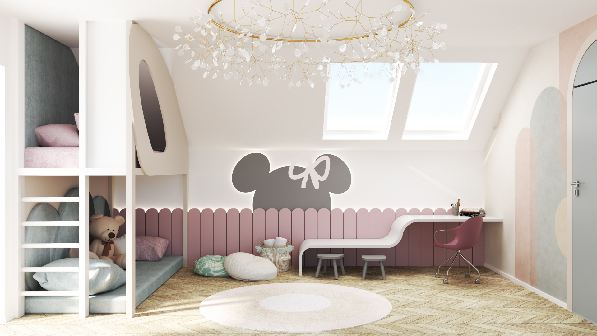 Projekt pokoju dziewczynki w domu jednorodzinnym w Gorlicach.